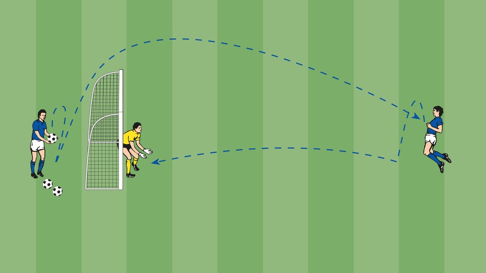 - Anschließend läuft der Torschütze auf die Position hinter dem Tor und spielt zu seinem Partner, der vor das Tor gelaufen ist.