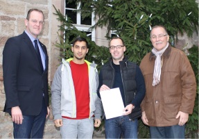 HFV-Vizepräsident Stefan Reuss hat kurz vor Weihnachten gemeinsam mit Kreisfußballwart Horst Schott (Werra-Meißner) einen Scheck im Rahmen der Initiative „1:0 für ein Willkommen“ der Egidius-Braun-Stiftung an die TSG Kammerbach überreicht.