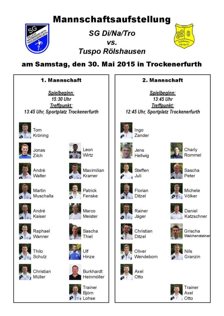 - Aufstellungen vs. Tuspo Röllshausen am 30.05.2015