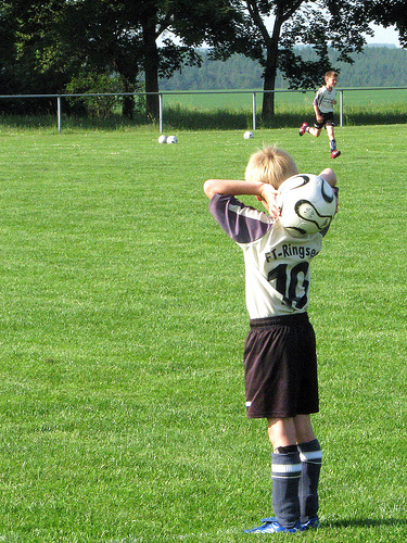 "Ein Einwurf ist dort auszuführen, wo der Ball das Spielfeld verlassen hat. Wie weit der Einwerfende dabei hinter der Seitenlinie steht, ist unerheblich; er darf sich aber nicht hinter einer Barriere oder einer Spielerbank befinden. Wenn der Spieler aber den Ball klar von einer anderen Stelle der Seitenlinie aus einwirft, muss der Schiedsrichter das Spiel unterbrechen und anschließend das Spiel durch Einwurf eines Spielers der gegnerischen Mannschaft fortsetzen lassen."