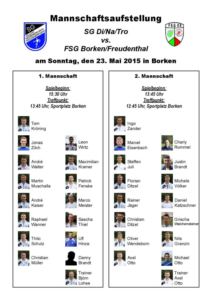 - Aufstellungen vs. FSG Borken/Freudenthal am 23.05.2015