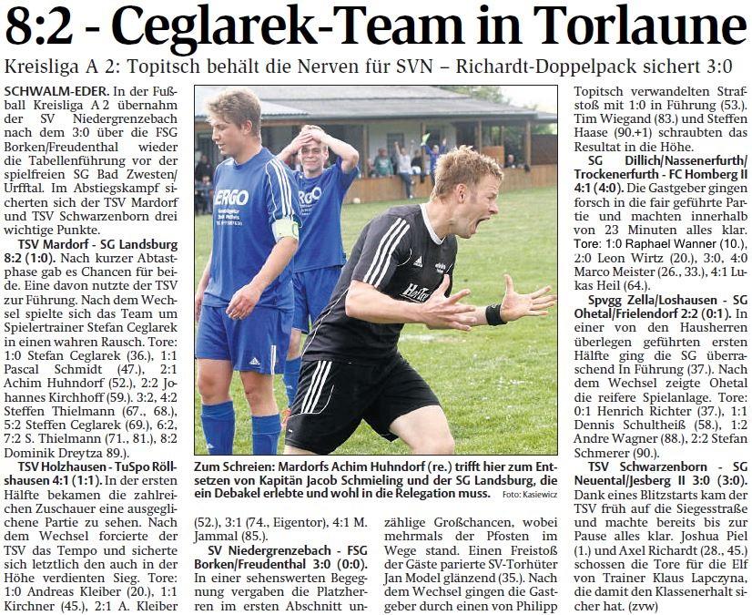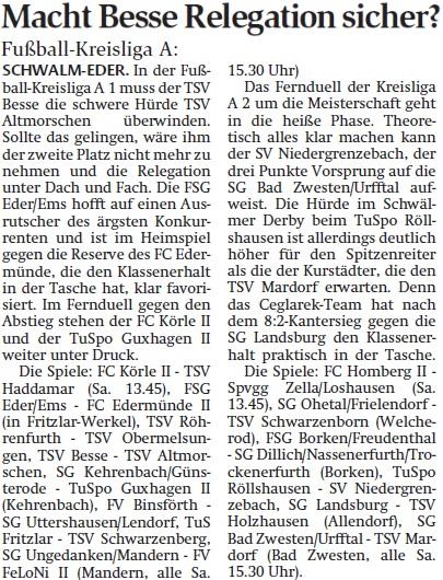 +++ Senioren aktuell: Berichte Kreisliga A - HNA vom 19.05.2015 +++