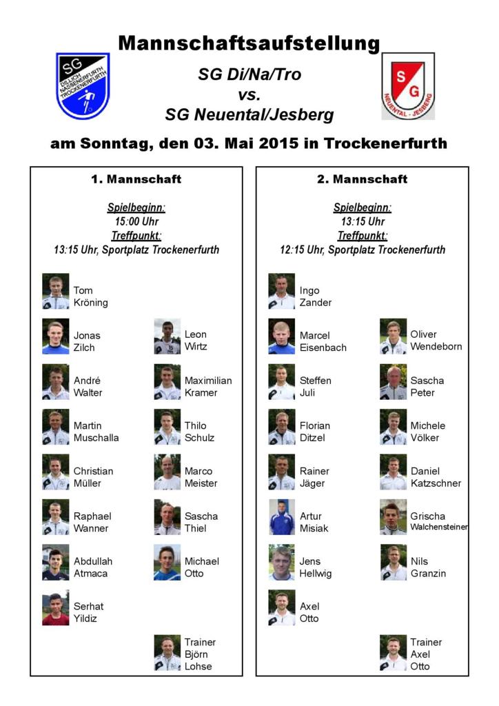 - Aufstellungen vs. SG Neuental/Jesberg am 03.05.2015