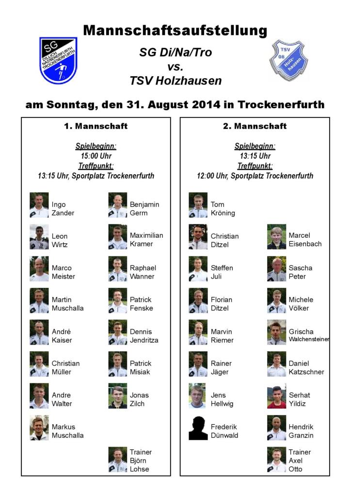 +++ Senioren aktuell: Aufstellung vs. TSV Holzhausen am 31.08.2014 +++