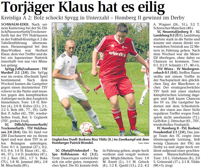 +++ Senioren aktuell: Berichte Kreisliga A - HNA vom 02.09.2014 +++