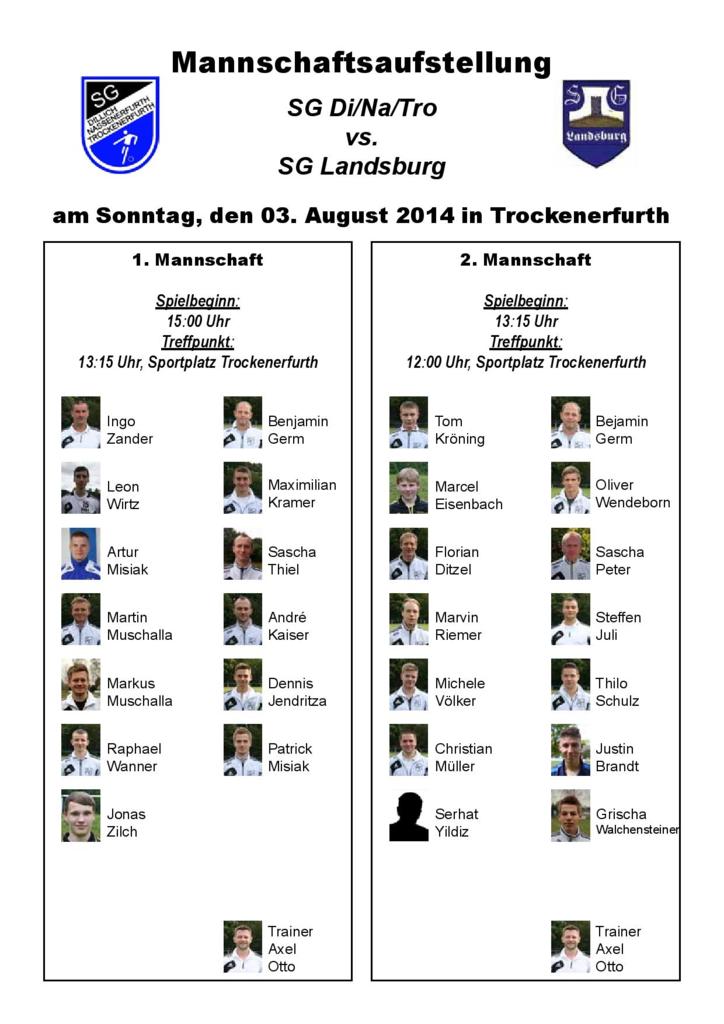 +++ Senioren aktuell: Aufstellung vs. SG Landsburg am 03.08.2014 +++