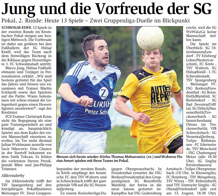 +++ Senioren aktuell: Vorberichte Krombacher Pokal - HNA vom 06.08.2014 +++
