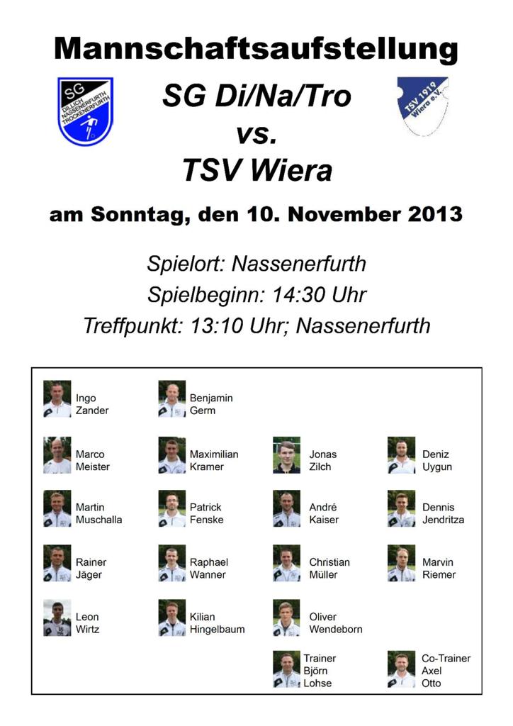 +++ Senioren aktuell: Aufstellungen vs. TSV Wiera am 10.11.2013 +++