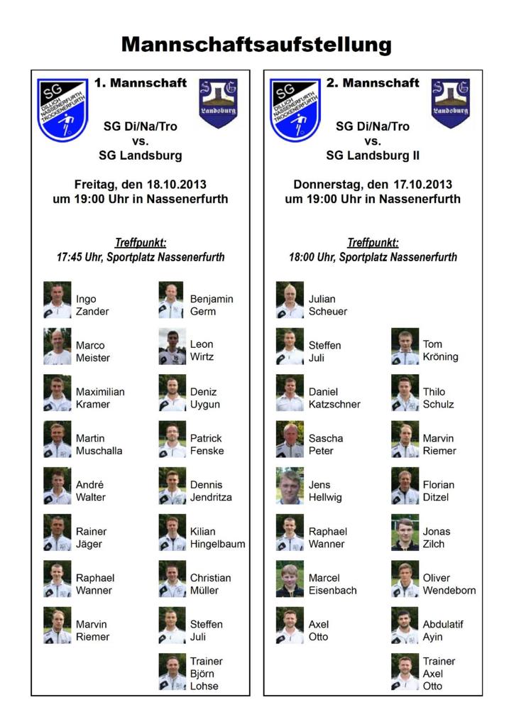 +++ Senioren aktuell: Aufstellungen vs. SG Landsburg am 17. und 18.10.2013 +++