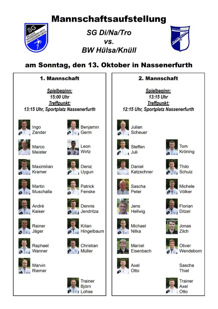 +++ Senioren aktuell: Aufstellungen vs. SG Blau-Weiß Hülsa am 13.10.2013 +++