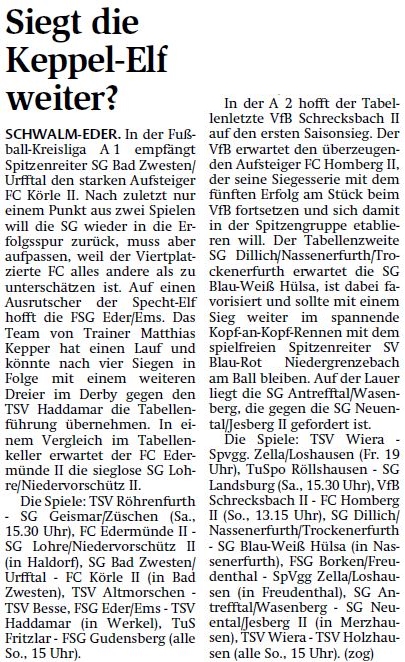 +++ Senioren aktuell: Berichte Kreisliga A - HNA vom 05.10.2013 +++