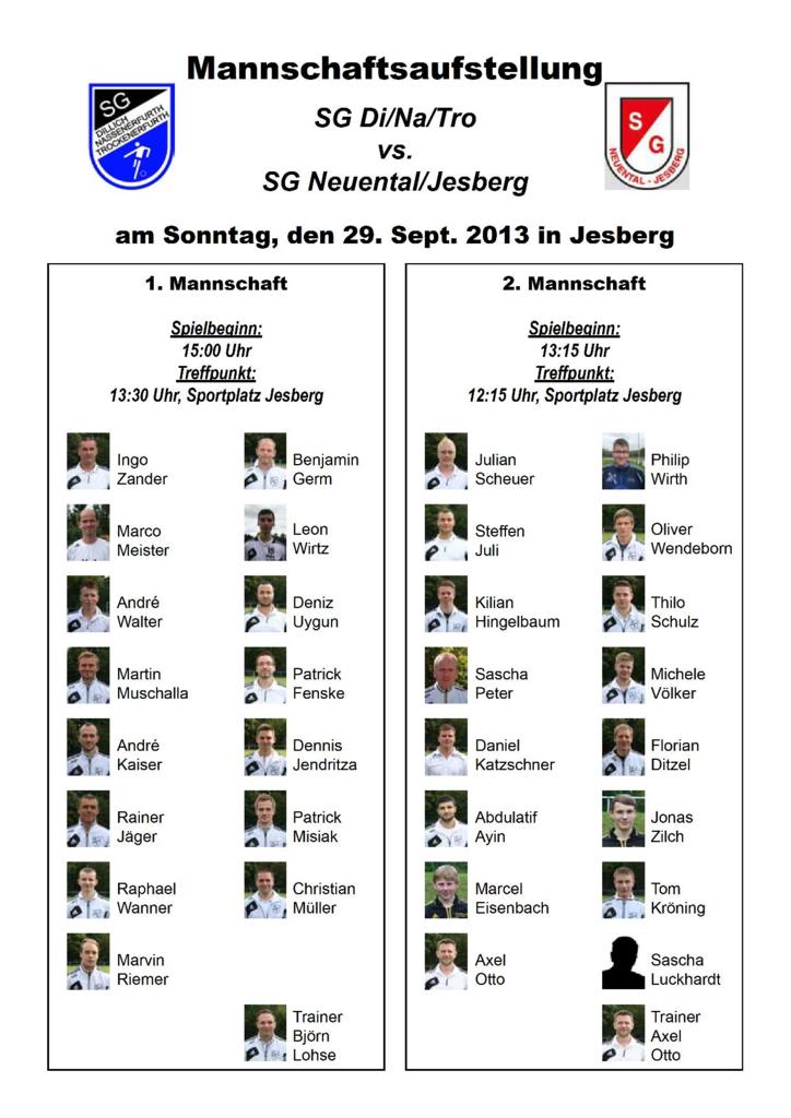 +++ Senioren aktuell: Aufstellungen vs. SG Neuental/Jesberg am 29.09.2013 +++