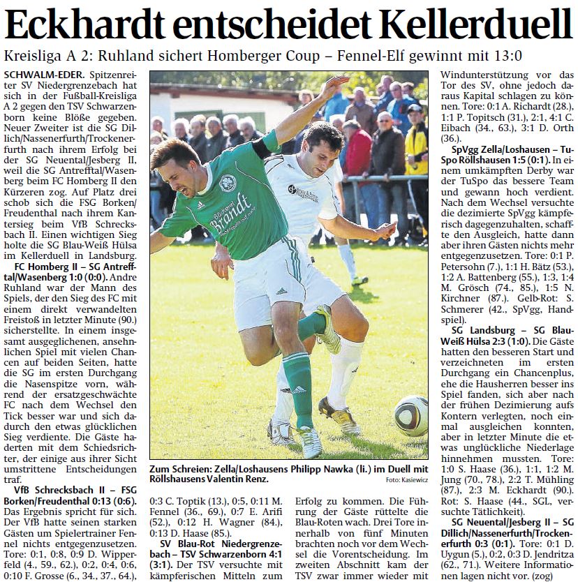 +++ Senioren aktuell: Berichte Kreisliga A - HNA vom 01.10.2013 +++