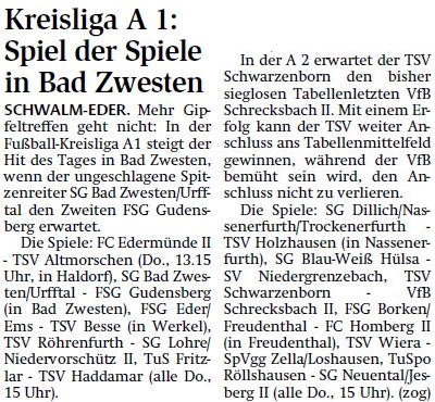 +++ Senioren aktuell: Vorberichte Kreisliga A - HNA vom 02.10.2013 +++