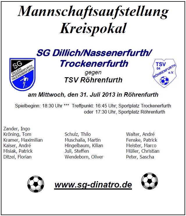 +++ Senioren aktuell: Aufstellung vs. TSV Röhrenfurth am 31.07.2013 +++