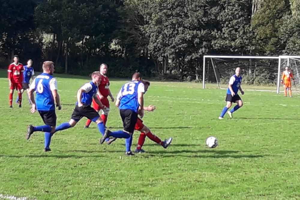 Bereits in der ersten Spielminute wurde die Lücke in der gegnerischen Abwehr gefunden und Marc Rustemeier erzielte die Führung. Fortan wurde mächtig Druck gemacht und die Gäste gerieten ins Wanken. Die zweite aufgebotene Offensivkraft Dean Thornton erhöhte kurz später bereits auf 2:0 (5.). Ein von Fynn Mohr verwandelter Strafstoß bedeutet die 3:0-Führung (17.), ehe erneut Sturmpartner Marc Rustemeier das 4:0 für sich verbuchen konnte.
