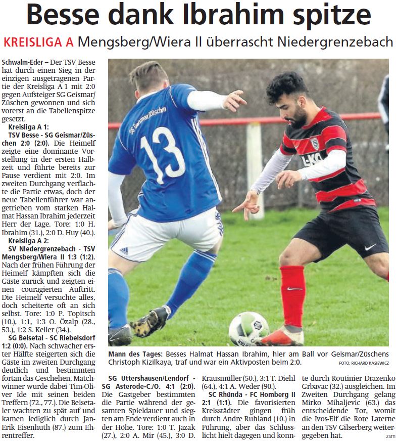 +++ Senioren aktuell: Berichte Kreisliga A - HNA vom 19.03.2019 +++