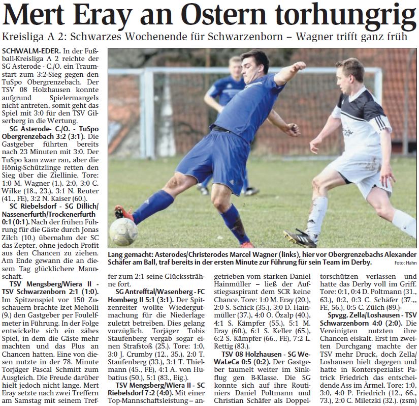 +++ Senioren aktuell: Berichte Kreisliga A - HNA vom 03.04.2018 +++