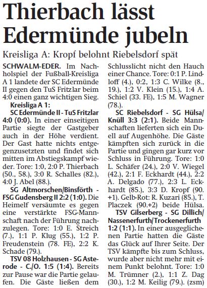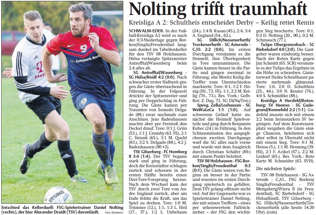 +++ Senioren aktuell: Berichte Kreisliga A - HNA vom 07.11.2017 +++