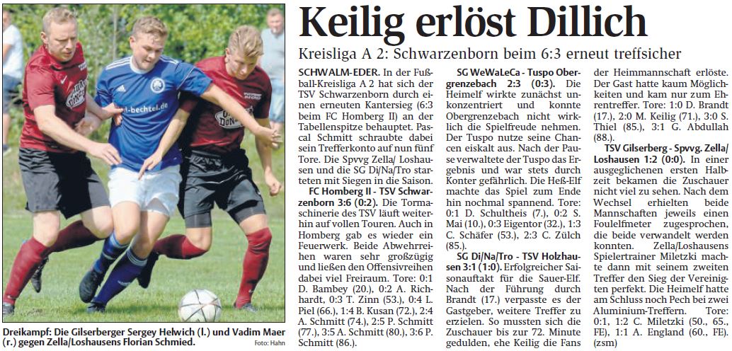 +++ Senioren aktuell: Berichte Kreisliga A - HNA vom 22.08.2017 +++