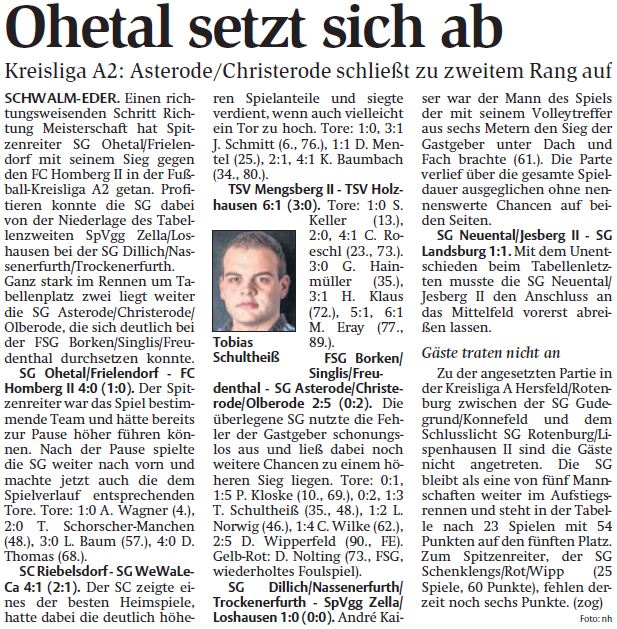 +++ Senioren aktuell: Berichte Kreisliga A - HNA vom 01.05.2017 +++