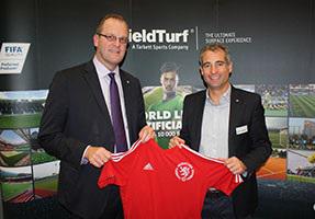 Seit 2014 arbeiten FieldTurf Tarkett und der Hessische Fußball-Verband zusammen. Nun wurde der Vertrag um ein weiteres Jahr verlängert. Schwerpunktthemen der Kooperation sind Kunstrasenseminare, die der HFV seit mehreren Jahren erfolgreich anbietet, sowie die Beratung von Vereinen. Mit Firmensitz in Paris, ist Tarkett weltweiter Marktführer für Bodenbelagslösungen und ein FIFA PREFERRED PRODUCER.