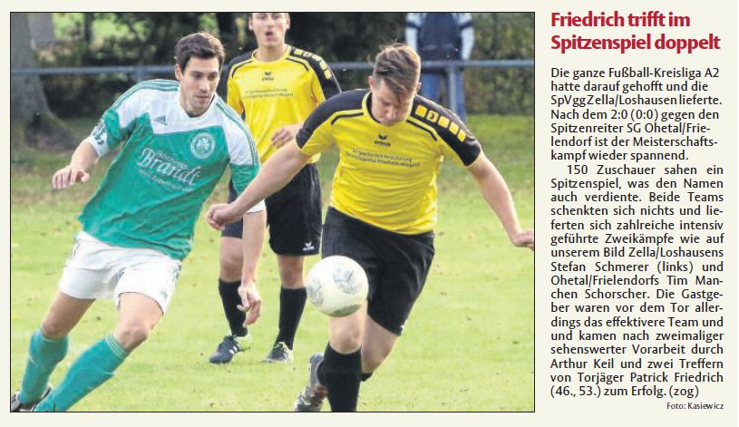 - Im Spiel der Fußball-Kreisliga A2 unterlag der | |||||||||||||||||||