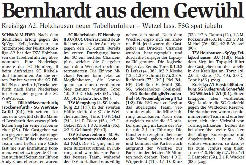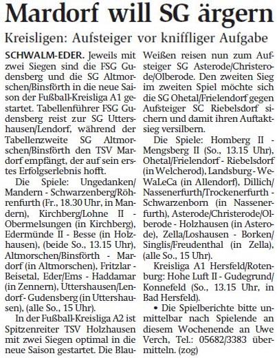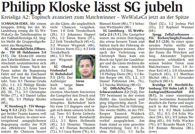 +++ Senioren aktuell: Berichte Kreisliga A - HNA vom 23.08.2016 +++