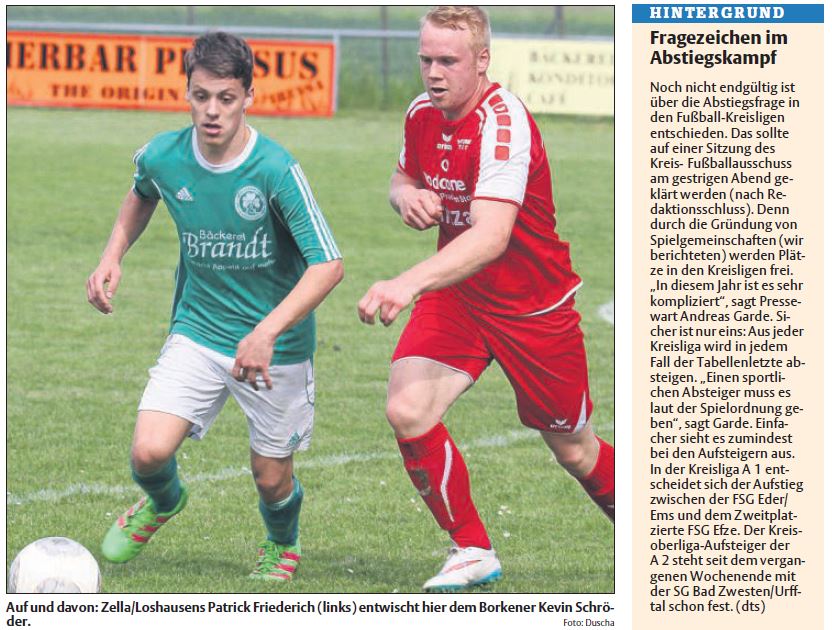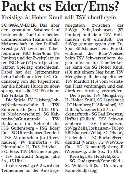 +++ Senioren aktuell: Berichte Kreisliga A - HNA vom 24.05.2016 +++