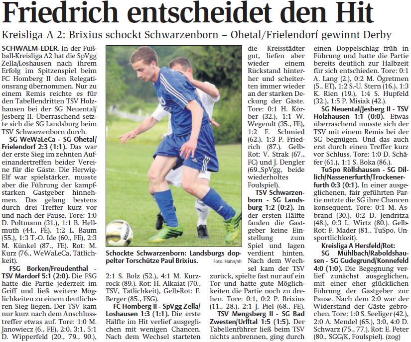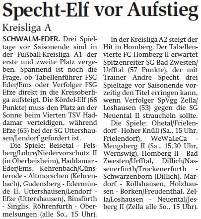 +++ Senioren aktuell: Berichte Kreisliga A - HNA vom 10.05.2016 +++
