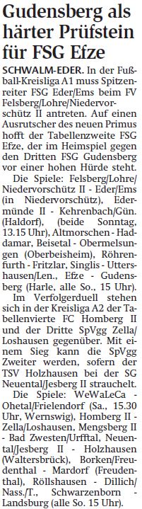 +++ Senioren aktuell: Vorberichte Kreisliga A - HNA vom 13.05.2016 +++