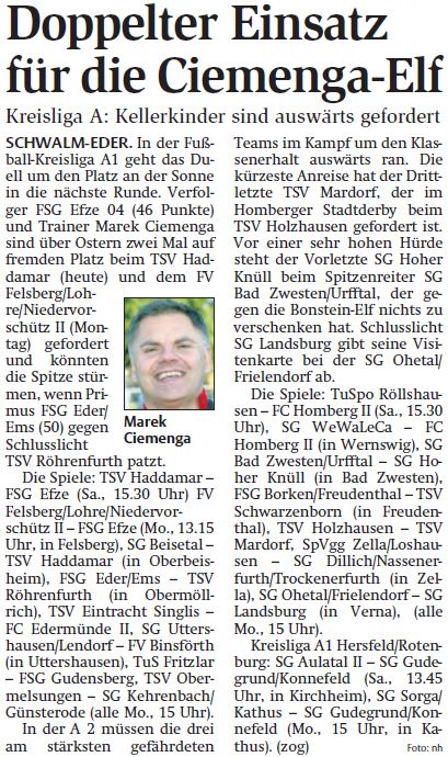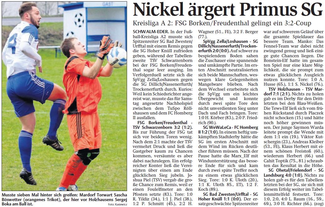 +++ Senioren aktuell: Berichte Kreisliga A - HNA vom 29.03.2016 +++
